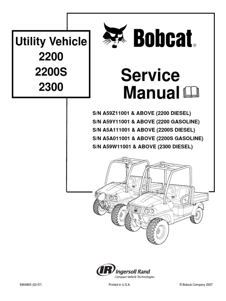 Bobcat 2200 2200s 2300 Utility Vehicle Workshop Repair Service Manual 6904893 Payhip